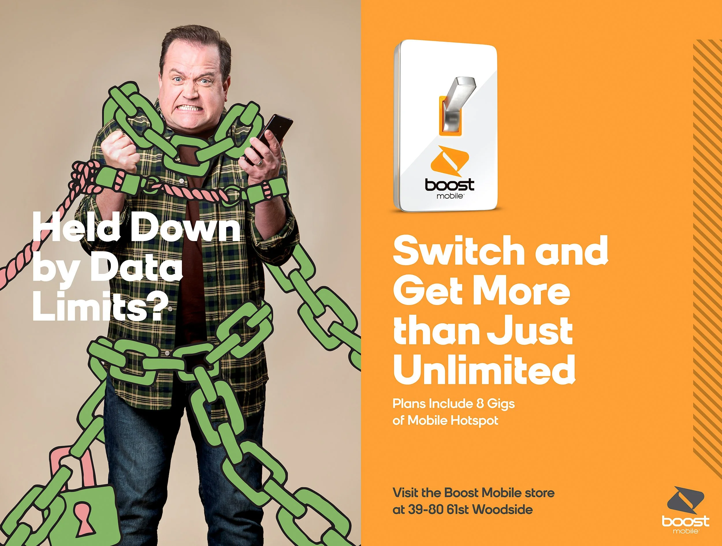 ← back Boost Mobile Photography created for Boost Mobile Pain Points campaign. ClientSchiefer ChopShopYear2018